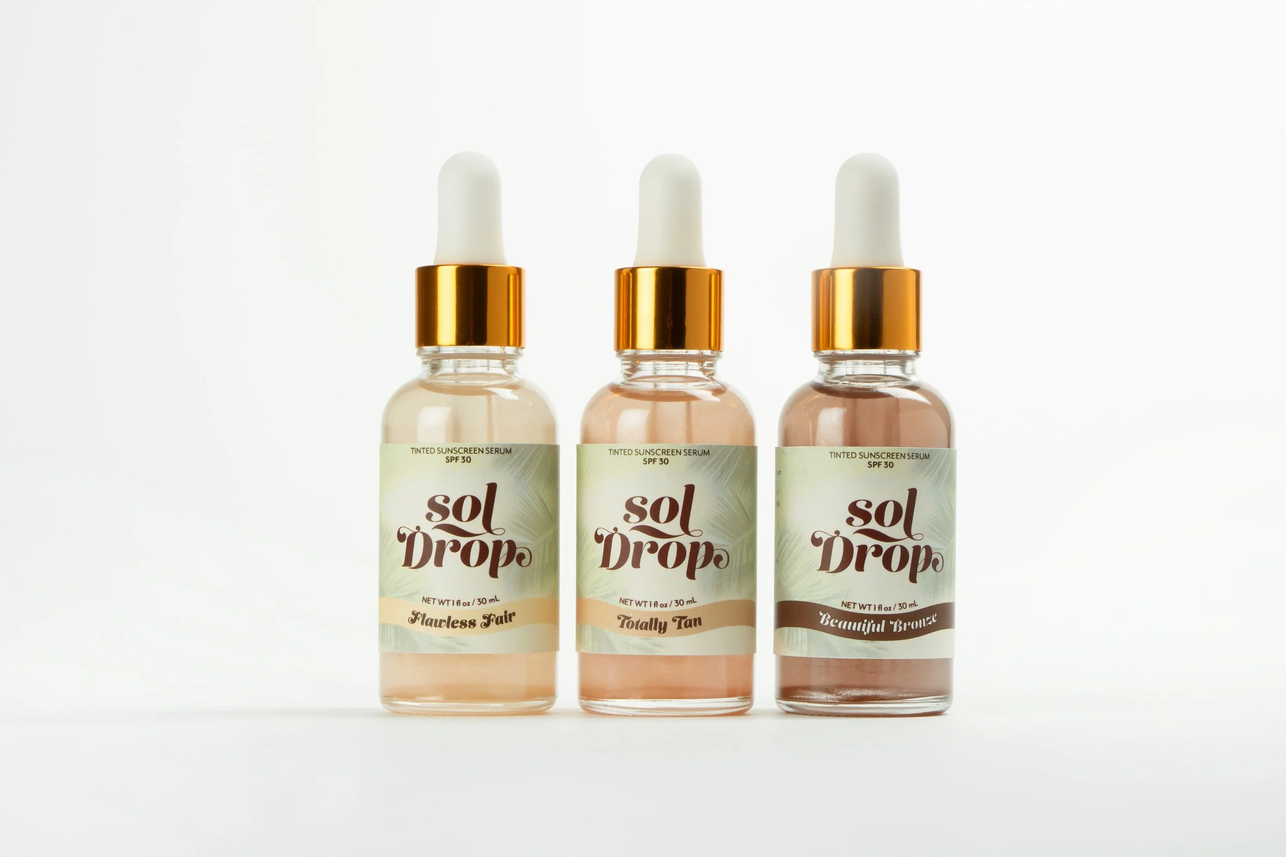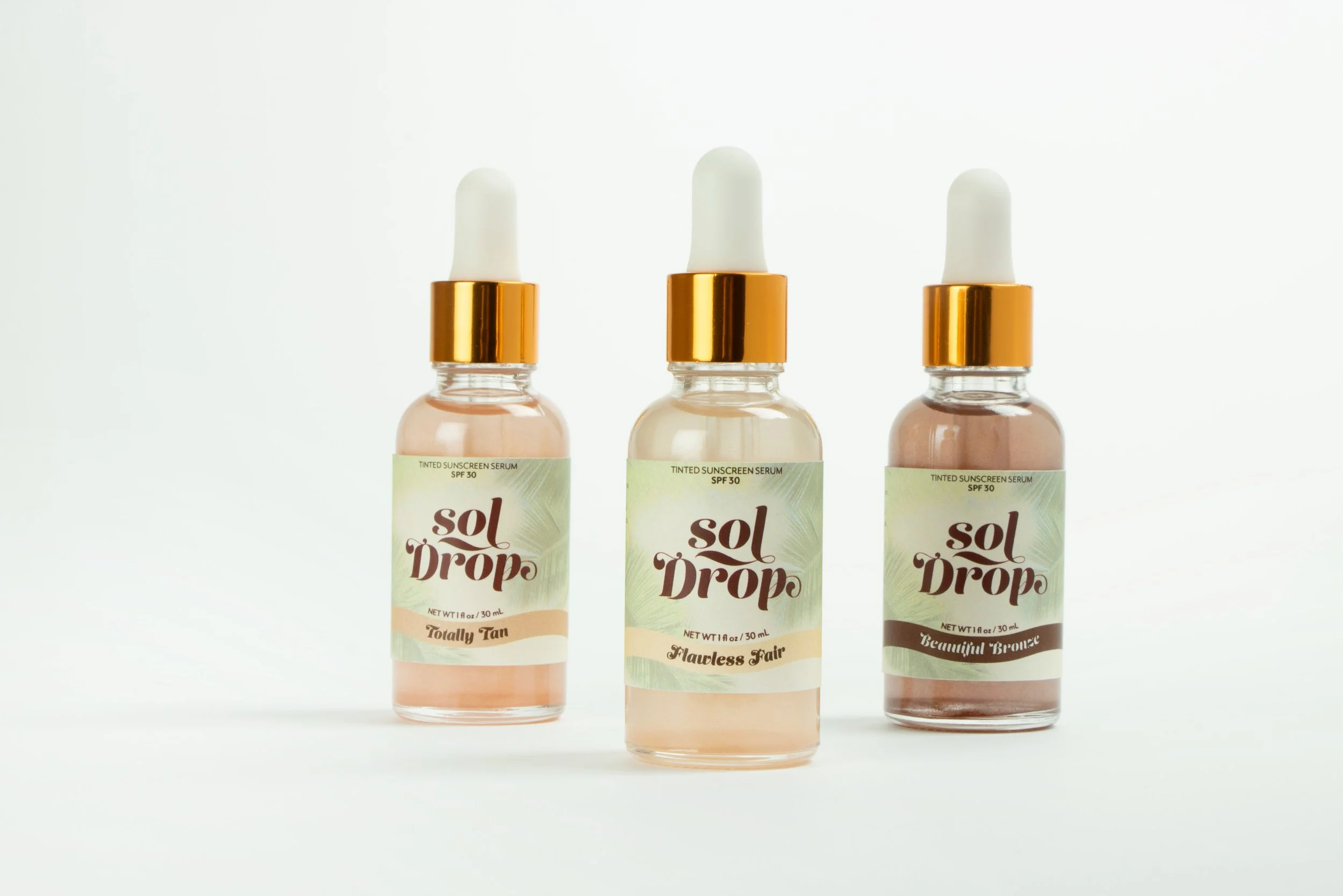 The overall objective of this project is to design and produce a series of three complementary labels for “Sol Drop” tinted sunscreen drops packaged in circular containers.